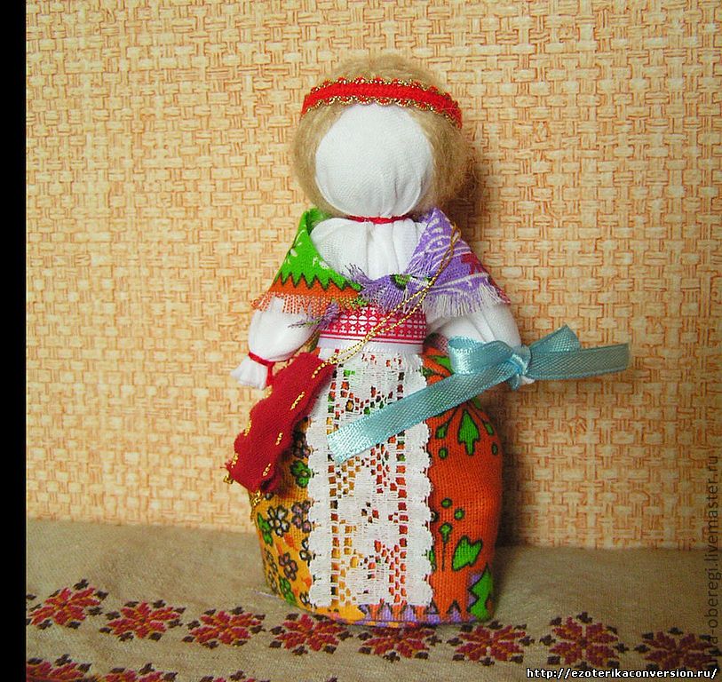 Можно изготовить оберег куклу. Обычаи, связанные с изготовлением кукол и их применением дошли до наших дней. Кукол, способных привлечь и сохранить достаток, делали по тем же принципам, что и прочие куклы Мотанки. Сначала с помощью крестообразно сложенных палочек, обмотанных белой тканью, делали основу. Затем изготавливали голову круглой формы и обматывали ее той же белой тканью, перевязав на месте шеи.В итоге получалась заготовка, которая перекидывалась через палку и закреплялась. Поверх нее надевали рубаху и юбку куколки. Отличие куклы, привлекающей и оберегающей деньги, заключалось в особой начинке. Внутрь помещались зерна и монеты – символ богатства. Чтобы усилить связь куклы с домом, в качестве основы для головы брали золу из домашнего очага. Ее смачивали водой и скатывали в шарик, а затем оборачивали белой тканью.Такую куклу-оберег ставили на видное место. Перед тем, как поместить ее на выбранную точку, трижды прочитывался заговор: