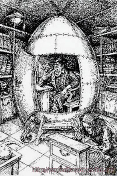 Секретный принцип действия яйца Нострадамуса пытался повторить Н. Козырев В дохристианские времена любая уважающая себя ведьма имела котелок, наполненный водою, которую перемешивала метлою, и в нем показывалось прошлое и будущее, в зависимости в какую сторону раскручивать воду. К ордену Тамплиеров охраняющих древние сокровища храма Соломона могло попасть одно из таких устройств, которое они решили испытать с помощью Нострадамуса. В своих трудах Н.Козырев, описывал некую энергию времени, идущую от звезд, которая пронизывает все на свете, но лишь зеркало может ее отразить. У конструкции яйца Нострадамуса срезана верхушка, которая открыта и это не случайно.
