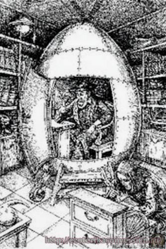 Верхняя часть капсулы была срезана и открыта. Внутри капсулы находилось небольшое кресло. Комната, где хранилось яйцо была секретной и в нее нельзя было входить даже друзьям.