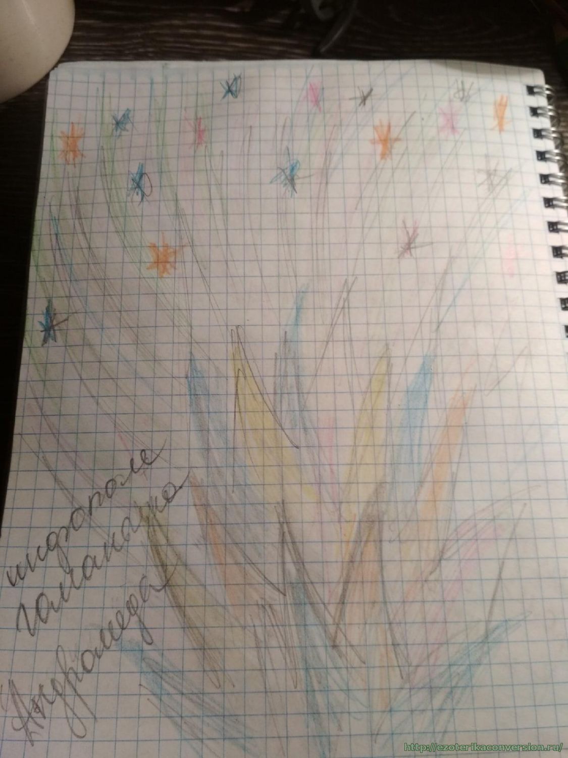 Далее инфополе Сириуса, оно по характеру легкое, очень невесомые потоки рисунок на Дашин похож рисовать не стала, энергия серебристая искрящаяся, пузырьки капсулы я и на первом пробном сразу увидела, но сколько радости в этом поле, ощущение серебристого нового года где все украшен красивыми шарами.. Далее инфополе галактики Андромеда... Даже не знаю с чем сравнивать, наверное как северное сияние, сполохи. Ты стоишь в каком то кристалле, что то напоминающее кристалл, причём он переливается разноцветием, от него как сполохи уходят вверх нити, и эти нити создают эффект вот этого сияния... И между нитями мерцание как звёздочки, очень красивое зрелище... Я наверное открыв рот наблюдала за ним завороженно... Нарисовала как смогла, но объёмы в 3д не умею отображать, прям просится под это зрелище компьютерная графика