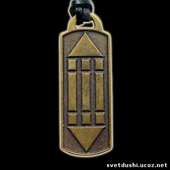 Первый вид его – соотносится с активною Мужской Природою. Он сделан из согнутой пластины, на которой награвирован знак Атлантический. Края пластины закруглены и не спаяны. Меж ними должно быть расстояние не более одного миллиметра. Данный зазор существует для циркуляции хронарной Энергии, которая сообразно Природе ея даёт нам силы и возможность использовать её по нуждам своим.