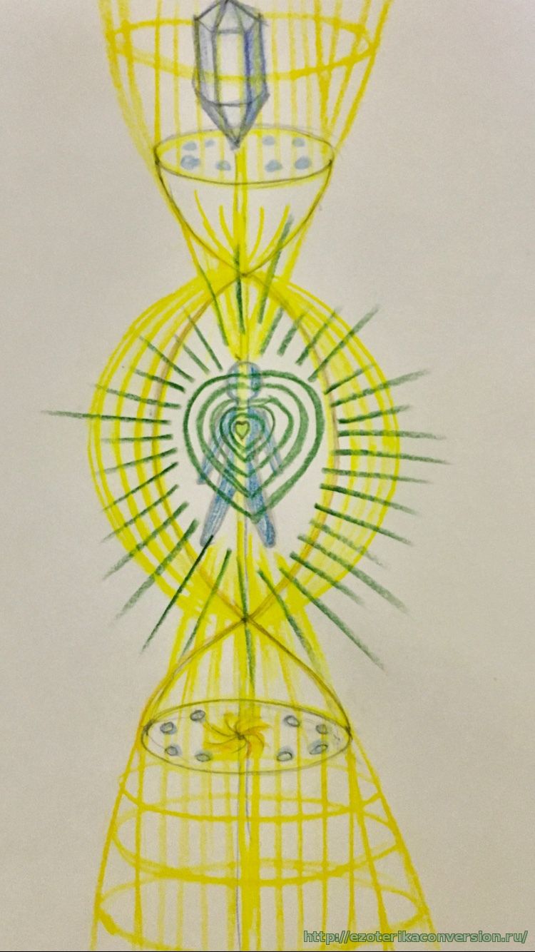 проходить выше, на другой уровень. Если уровень вибраций низкий - происходит очищение и подпитка. Если уровень соответствует высоким вибрациям, то вас сразу переводят на другой уровень. Здесь тоже сканируют, но пространство уже не замкнутое, а световое, в котором человек получает полный расклад и анализ своих возможностей (к чему способности, какой уровень..). Шкала ранжирования распределяет по уровню, где индивид сможет реализовываться (идёт раскрытие и включение этих способностей очень быстро - ментально). А также в портале можно активировать кристаллы, закладывать в них необходимые свойства и программы. Брать информацию из портального кристалла и усиливать рабочие Кристаллы ретранслятором. Сам столб света - портал является анализатором. Если объяснить просто, то вы заходите в него и вас анализируют. Происходит апгрейд. Кристалл сверху усиливает энергии и одновременно является хранителем информации. Кристалл-это многофункциональное устройство. Тут можно всё. Уровень задач для решения-любой! Идёт сильнейшее расширение сердечной чакрыАнахаты, Объединенная чакра усиливает своё распространение.