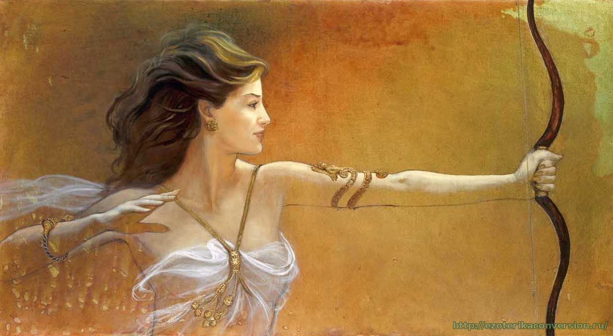 Артемида - девственная богиня-охотница, покровительница животных, богиня плодородия, а также, Богиня Луны. Символы богини - лань и медведица. Богиня помогает людям, находящимся в дикой природе: в охоте, рыбалке, в спасении от стихийных бедствий, которые могут там произойти.