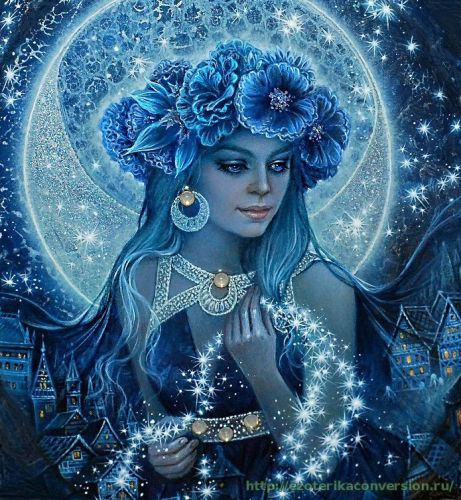 Интерес представляют сведения о единой Лунной Богине, представленные в литературных источниках: " ВЕЛИКАЯ ЛУННАЯ БОГИНЯ" Имеется множество причин, объясняющих существование связи между Великой Богиней и Луной. Так, например, свойство Луны расти и увеличиваться, а затем убывать сходно с изменениями в женском теле во время беременности. На более глубоком уровне понимания это можно объяснить так: богиня управляла ростом всего сущего, а значит" и самим менструальный цикл, тем самым, пытаясь связать Луну и плодовитость. Богиня имела тройственный образ: девы, матери и старухи. Но посвященные знали о четвертое лике богини чародейке, или искусительнице.