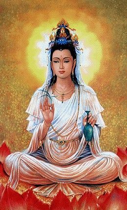 Куань Инь, как считают буддисты, это Бодхисаттва, которая отказалась от вечного блаженства, до тех пор, пока всем людям не будет позволено покинуть Колесо Перевоплощений и их слезы не будут исцелены.