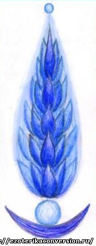 УПРАЖНЕНИЕ «ОМЫВАНИЕ ГОЛУБЫМ ОГНЕМ» Возжигание Голубого Огня на ладонях. Ладони ставятся на грудь на уровне Анахата-чакры (сердечной) пальцами вниз, совершаются вращательные движения в противоположные стороны 3 раза – омывание груди. Ладони скрещиваются на уровне Вишудхи, затем на Аджне, на Сахасраре. Затем правая ладонь накладывается на 7 шейный позвонок пальцами вниз, а ладонь левой руки на копчик пальцами вниз. Затем руки складываются на животе – на Манипуре, затем внизу живота симметрично по бокам (на проекции яичников у женщин), затем аналогично сзади. Затем руки поместить в промежность. Потом накладывать поочередно ладони на коленные суставы – одна сверху, другая снизу. В заключение поочередно накладываются ладони на стопы – одна на пятку, другая на пальцы. Это упражнение хорошо делать по утрам, еще это упражнение очень эффективно работает в сочетании с водными процедурами – в душе, например. Омываться Голубым огнем полезно после пребывания в людном месте, чтобы нейтрализовать негативные энергетические воздействия. САКРАЛЬНОЕ ВЕЛЕНИЕ ДЛЯ ВОЗЖИГАНИЯ СИНЕГО ОГНЯ «Союз Земли и Неба несет Синий луч. Союз души и тела несет Синий луч. Союз человека и Творца несет Синий луч. Союз Момента и Вечности несет синий луч. Вечность – Момент. Момент – Вечность. Синий луч – символ соединения Микрокосма и Макрокосма. Связующий, соединяющий, созидающий. Аминь».  УПРАЖНЕНИЕ «ОМЫВАНИЕ СИНИМ ОГНЕМ» Вы осторожно склоняетесь, и обхватываете себя за щиколотки, включаете Синий огонь. Проводите его по наружным меридианам ног. Все движения производите, не отрывая рук от тела. Совершить 3 вращения вперед раскрытыми ладонями на уровне коленей, затем тазобедренных суставов. Довести ладони до груди, накрыть ладонями грудь (область сосков). Затем сложить руки на высшем сердечном центре, правая рука сверху, затем довести ладони до ушей, совершить 3 вращения, затем накрыть ладонями глаза, затем поставит руки в положении «намасте» на Сахасраре. Весь организм наполняется энергией Синего огня и жидкие среды активизируются. Это упражнение полезно делать вечером, а так же в случае отеков, инфекции, простуды. СТРУКТУРИЗАЦИЯ И ЗАРЯДКА ВОДЫ ЭНЕРГИЯМИ ГОЛУБОГО И СИНЕГО ОГНЯ. Вы можете напечатать на фотобумаге сакральные изображения Голубого и Синего огня. Чтобы они долго служили, лучше их заламинировать. Изображение Голубого огня вы кладете под емкость с водой (стекло, фарфор, пластик), и накрываете сверху изображением Синего огня (любой стороной картинки). После нескольких минут (зависит от объема жидкости) вода приобретает максимально возможную для этой воды кристаллическую структуру (зависит от исходной структуры – водопроводная до 60%, родниковая или артезианская до 99%). Если просто пить такую воду, ваш организм начнет очищаться от шлаков, отеков, токсинов. Можно эту структурированную воду зарядить дополнительной информацией – прочесть над ней молитвы «Отче наш» или «Символ веры», и внести информацию целительского характера, например: «Это вода есть лекарство для исцеления моего организма от головной боли (радикулита, ожирения, перхоти – чего угодно). Да будет так! (или «Аминь»)». Информация обязательно должна быть утвердительной и не содержать частицы «не». Если вы не христианин, или вообще атеист, можно обойтись без молитв, или прочесть молитвы вашей