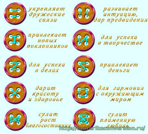 Пришивая пуговицу, можно изменить свою судьбу. Надо лишь продеть иголку с ниткой в отверстия так, чтобы получился нужный узор одной из букв рунического алфавита. У каждой руны свое значение.