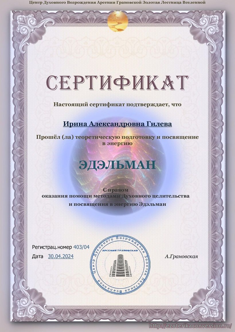Ученик получает: Методическое пособие "Эдельман", Код Эдельман, Общие практики очищения и защиты, Схему сеанса до востребования, Кодекс этики, правила. Доп.материал - Хроники Акаши.