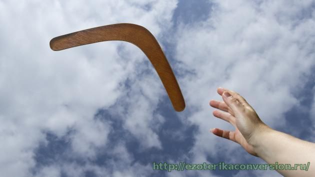 Позволив себе негативную мысль, вы УЖЕ совершили плохой поступок, и по закону бумеранга, он вернется к вам в виде проблем, даже если вы ничего плохого и не сделали. Если перефразировать известное выражение о правиле бумеранга, то получится: