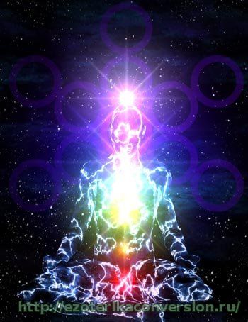 * Посмотрите на все семь чакр, вращающихся по часовой стрелке. * Присмотритесь к потоку энергии, протекающему по главному энергетическому каналу в позвоночном столбе. * Этот поток пульсирует в такт вашему дыханию. * Когда вы вдыхаете, пульсовая волна направлена вверх, а когда выдыхаете вниз. * Посмотрите, как все чакры соединяются своими кончиками с этим главным потоком, как макушечная чакра формирует главный вход и выход потока, а корневая чакра образует входные ворота для энергии, входящей в ваше энергетическое поле. * Понаблюдайте, как энергия во время вдоха входит в вашу ауру. * Теперь все ваше поле заполнено светлой энергией, а низшие чакры полностью заряжены положительной энергией.