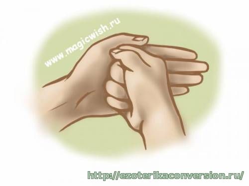 Сядьте или встаньте так, чтобы ваше лицо "смотрело" на юг. Поднимите руки на уровень солнечного сплетения. На левой руке прижмите большой палец к боку указательного и выпрямите кисть. Она олицетворяет щит.
