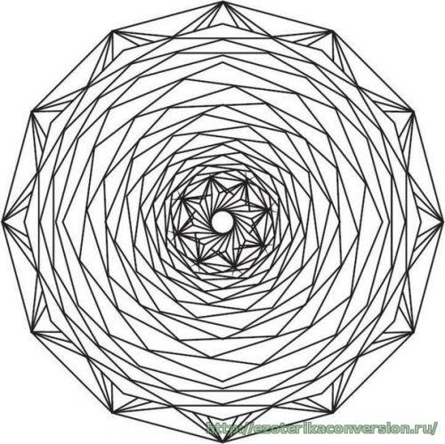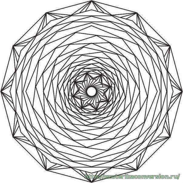 Концентрация взгляда на центре рисунка позволяет на какое-то время удержать сознание в спокойном состоянии. Происходит упорядочение мыслей, прекращается внутренний, бесконечный и бесполезный диалог, уходят тревоги.