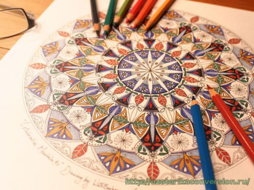 * Вторую и последующие мандалы рисуйте осознанно, выбирая цвет, который вам нравится. Позволяйте себе любое сочетание цвета, повторение цвета, или разукрасьте всю мандалу одним карандашом. Рисование мандалы можно отложить, если устали.