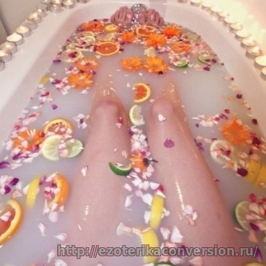 Нужно отжать сок из 5-6 апельсинов, разбавить его наполовину водой и добавить 3 соловые ложки миндального или кокосового масла. Выливаем смесь в ванну и наслаждаемся 20-25 минут. Эта ванна полезна для тех, кто хочет повысить упругость кожи.