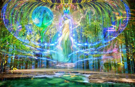 Пошел сильный поток энергии. Моргали немного глаза. Ощущения движения на уровне лба и верхней части головы. Видится слегка затемненный портал. По нему движится фигура человека. Потом появляется голубое пространство и в нем светлый белый портал, движение продолжается. И затем видно светлое пространство в нежных бело голубых тонах. Через какое то время появляется светящийся крест, как золотистый, но он больше похож на плюс. А вокруг начинает появляться как радужная обводка во все четыре стороны. Радужные цвета яркие. Вижу рукаятку меча, куда то воткнутого. Потом вижу весь мечь в пространстве.По лезвию толи орнамент, толи надпись, не понятно. Несколько раз повторяла название энергии и сразу шел отзыв в виде усиливающегося потока энергии и высветления, более яркого пространства. У меня возникает вопрос) Я задаю его в короткой форме. Кто Я? Пространство ожило и стало передвигаться снизу вверх, как такими очень тонкими белоснежными кружевными веерами, а движения, как распускающиеся цветы. Очень красиво!!!) Потом вижу фигуру белоснежного Ангела с белоснежными длинными волосами. У него белоснежный огромный меч)) Потом в пространстве видятся светлые силуэты больших Существ. Сильный поток энергии. Всех, Всех, Всех Благодарю, Благодарю, Благодарю!!!