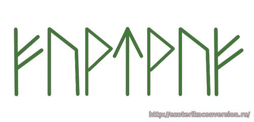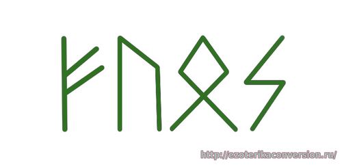 Эту формулу хорошо использовать, если есть необходимость развить какую-то определенную сферу, достигнуть цели в конкретной задаче. И еще одна особенность начертания данной формулы в том, что ее мы пишем, начиная с руны Тейваз. Попарно окружая рунами. Т.е. после Тейваз пишем руну Вуньо слева, потом справа и т.д. Феху — руна материального богатства и процветания. Уруз — руна силы, мощи. Вуньо — руна нового начала, успеха, радости. Тейваз — руна силы, борьбы, стремительного движения.